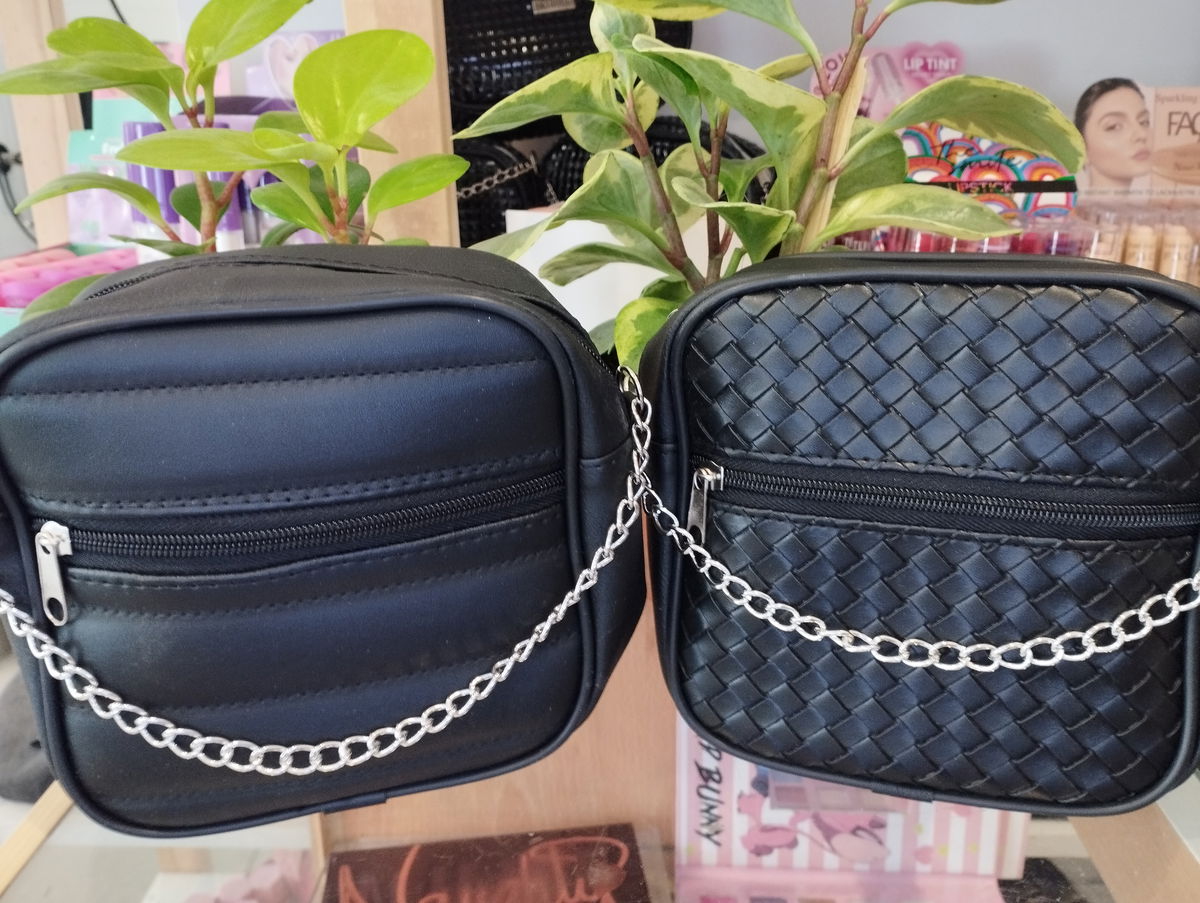 Cartera con tira de cadena y cierre delantero